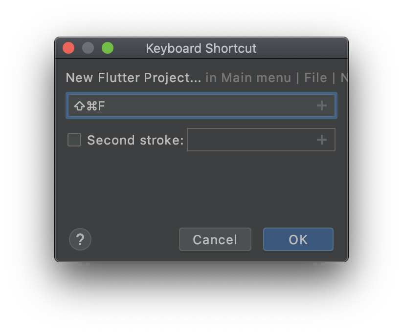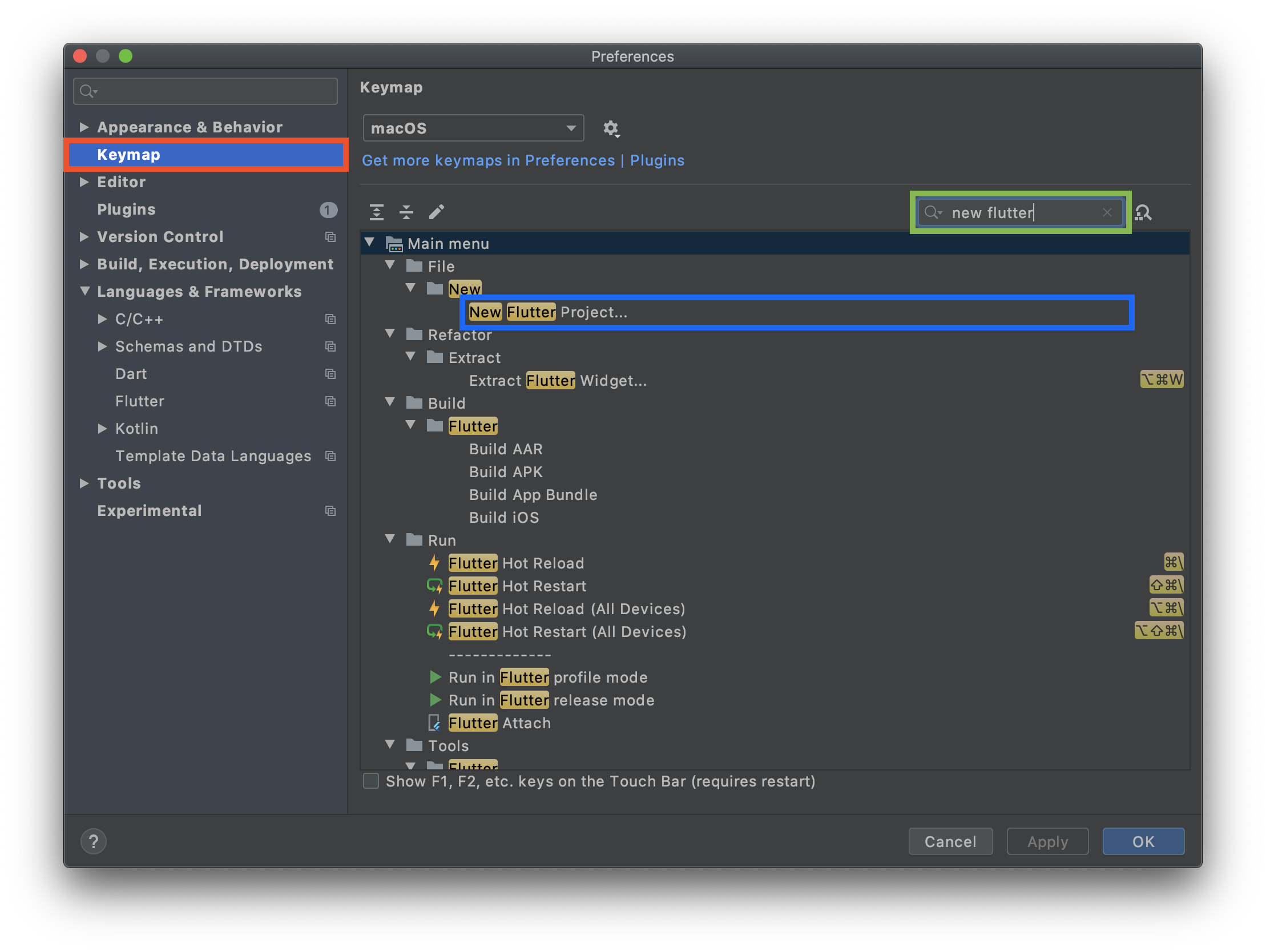 Ex > New Flutter Project 에 대해 cmd + Shfit + F 단축키 설정하기