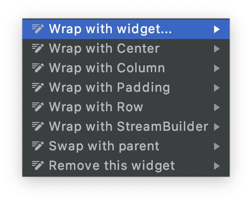 1. Container 위젯을 우클릭하여 아래 이미지와 같은 컨텍스트 메뉴가 나타나면, Wrap with widget 을 클릭한다.