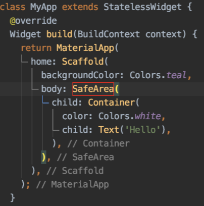 이런 이슈를 해결할 수 있도록, Flutter에서는 SafeArea 위젯을 제공한다.