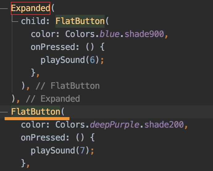 첫번째 FlatButton 위젯을 Expanded 위젯으로 감싸고 나서, 두번째 FlatButton 위젯도 동일한 작업을 하려고 했는데 아무리 opt + Enter 키를 누르고 우클릭 후 Show Context actions 를 클릭해봐도 아래 이미지와 같은 메뉴가 나오지 않았다 ㅠㅠ