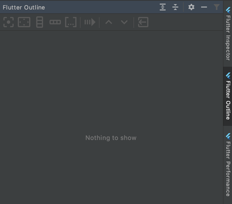 간혹 Flutter Outline을 클릭해도, 아래 이미지처럼 Nothing to show 가 뜰 수 있다.