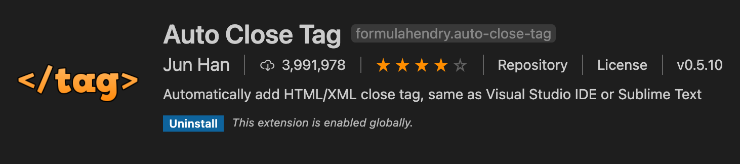 HTML 작성 시, 닫는 태그를 자동으로 입력해줍니다. 시간 단축이 제법 많이 되는 것 같습니다!