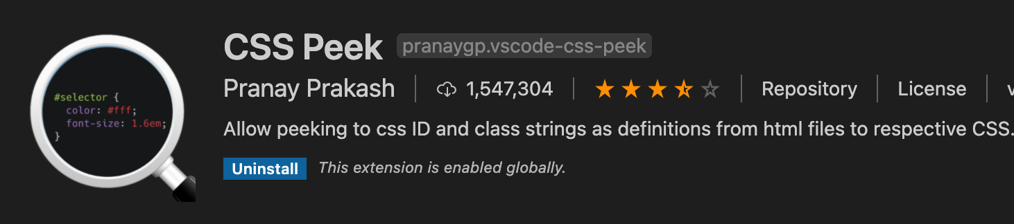 html에 적용되어 있는 css 의 위치를 찾아줍니다. html이랑 css 양쪽에 띄워놓고 찾아가는 수고로움을 덜어주는 기특한 칭구예요 👍🏻